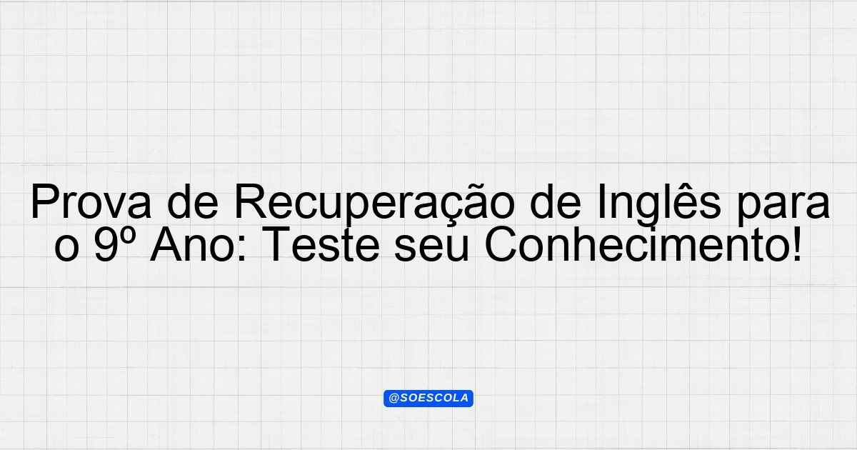 Continue lendoTema: Prova de Recuperação de InglêsEtapa/Série: 9º anoDisciplina: Língua InglesaQuestões: 10 Prova de Recuperação de Inglês – 9º Ano Esta