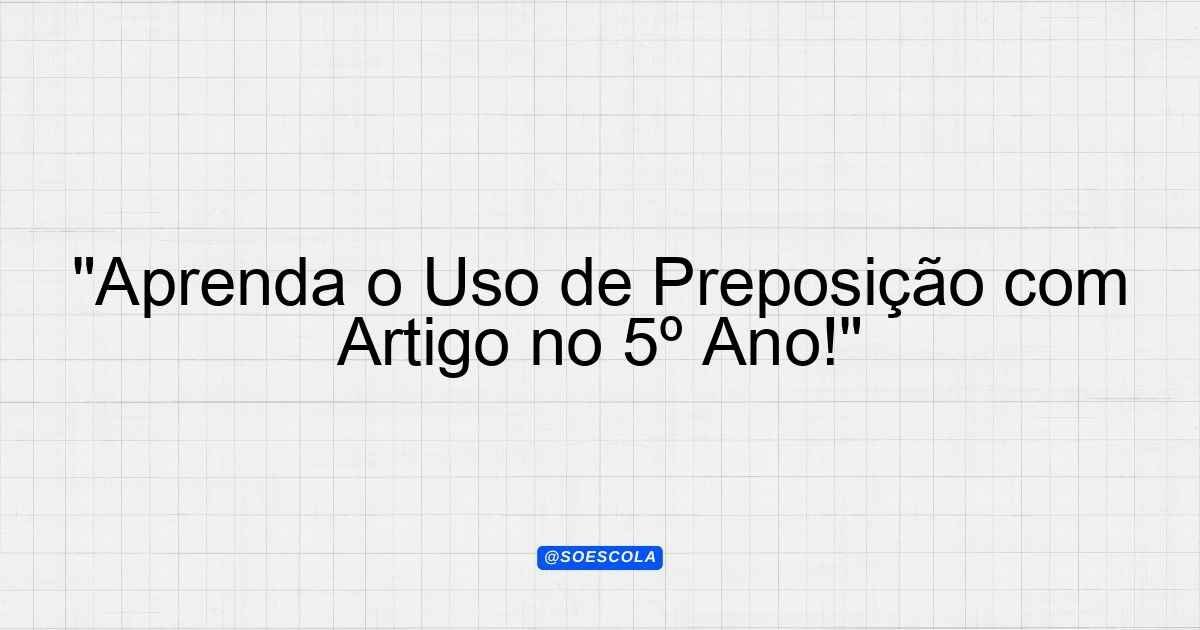 Continue lendoTema: uso de preposição com artigoEtapa/Série: 5º anoDisciplina: Língua PortuguesaQuestões: 5 Prova de Língua Portuguesa – 5º Ano Tema: Uso