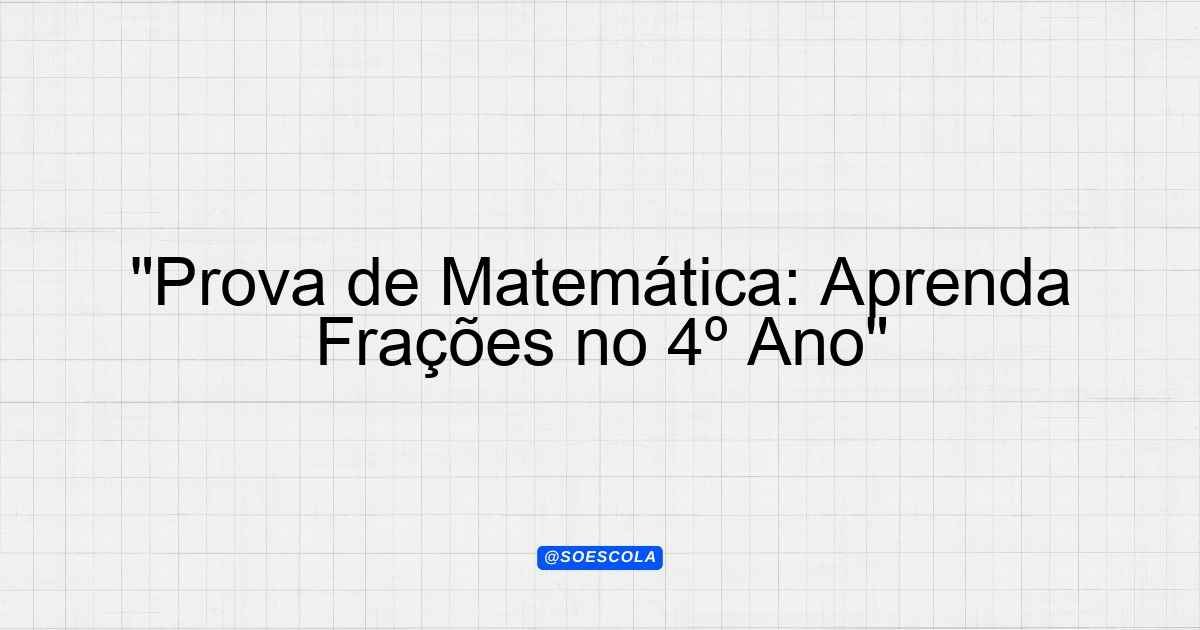 Continue lendoTema: fraçoesEtapa/Série: 4º anoDisciplina: MatemáticaQuestões: 10 Prova de Matemática: Frações – 4º Ano Instruções: Leia atentamente cada questão e responda