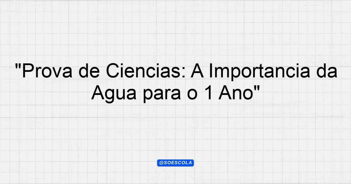 Continue lendoTema: sobre a aguaEtapa/Série: 1º anoDisciplina: CiênciasQuestões: 8 Prova de Ciências – 1º Ano Tema: Sobre a Água Instruções: Leia