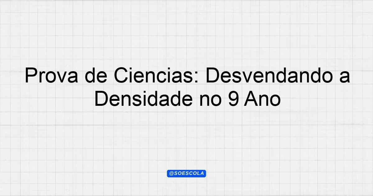 Continue lendoTema: DensidadeEtapa/Série: 9º anoDisciplina: CiênciasQuestões: 10 Prova de Ciências – 9º Ano Tema: Densidade Instruções: Leia atentamente cada questão e