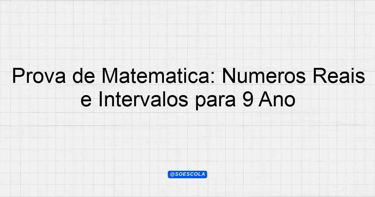 Continue lendoTema: conjunto de números reais, intervalos reaisEtapa/Série: 9º anoDisciplina: MatemáticaQuestões: 12 Prova de Matemática – 9º Ano Tema: Conjunto de