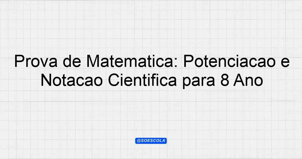 Continue lendoTema: crie uma prova com 6 questões sobre Potenciação com expoentes inteiros, Propriedades da potencia, Notação cientifica e Raízes extascrie