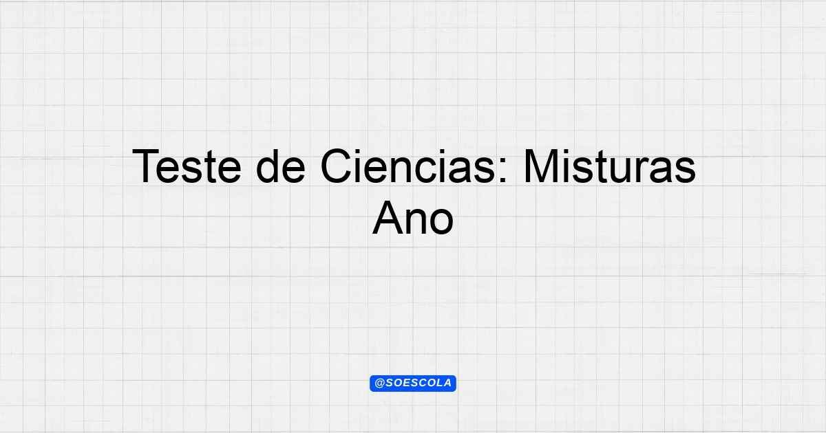 Continue lendoTema: Misturas homogêneas e heterogêneasEtapa/Série: 6º anoDisciplina: CiênciasQuestões: 10 # Prova de Ciências – 6º Ano ### Tema: Misturas Homogêneas