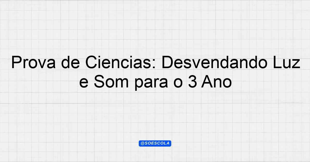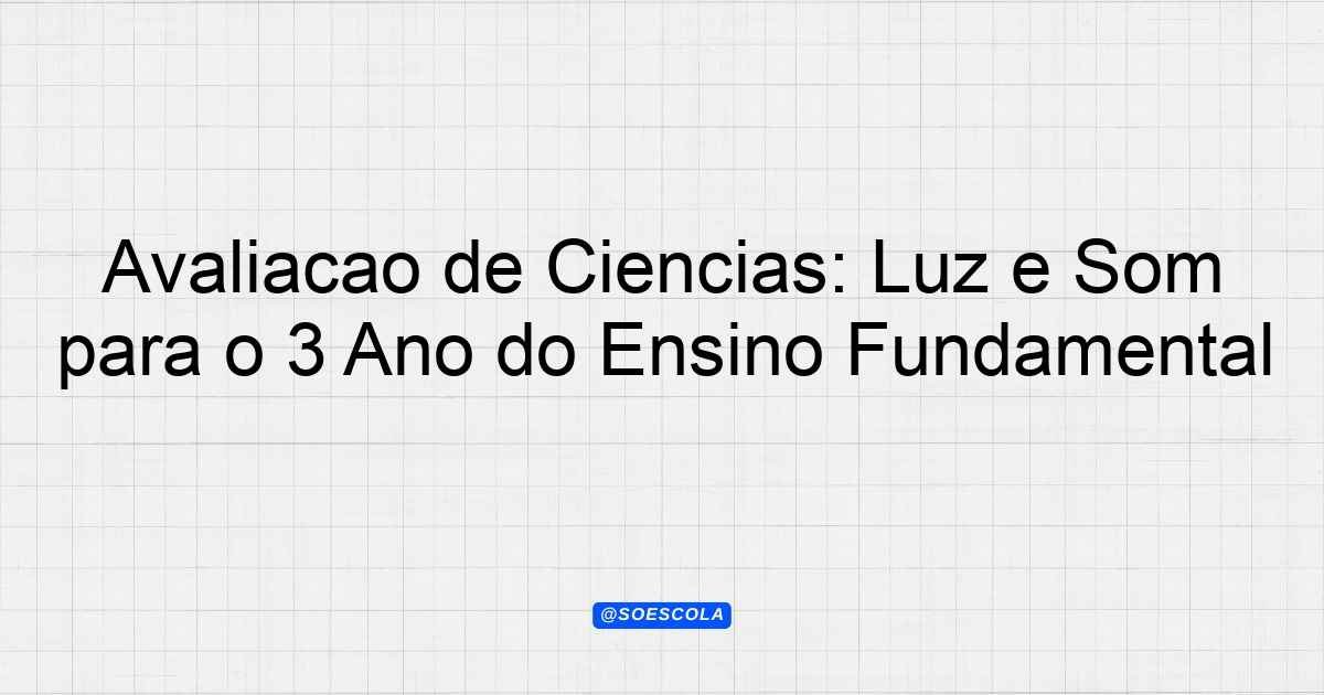 Continue lendoTema: luz e somEtapa/Série: 3º anoDisciplina: CiênciasQuestões: 10 Avaliação de Ciências – 3º Ano Tema: Luz e Som Essa prova