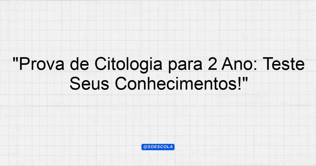 Continue lendoTema: citologiaEtapa/Série: 2º anoDisciplina: BiologiaQuestões: 10 Prova de Biologia: Citologia – 2º Ano Instruções Leia atentamente cada questão e responda