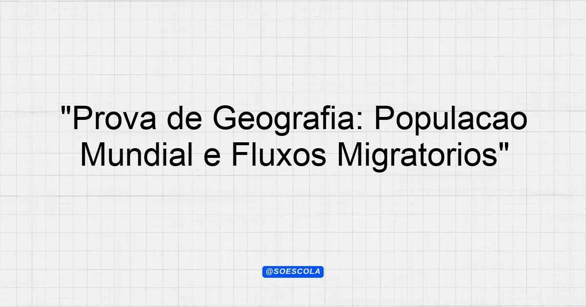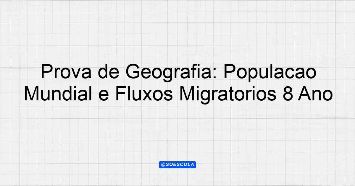 Continue lendoTema: População mundial , fluxos migratóriosEtapa/Série: 8º anoDisciplina: GeografiaQuestões: 10 Prova de Geografia – 8º Ano Tema: População Mundial e