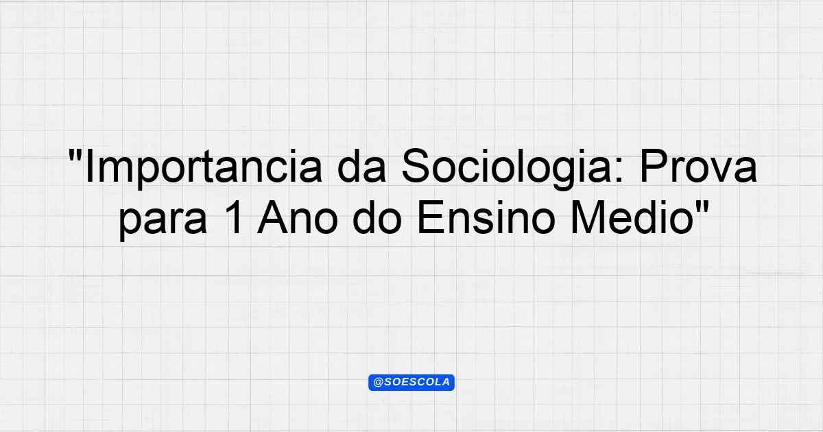 Continue lendoTema: Porque estudar sociologia e Ciências SociaisEtapa/Série: 1º ano – Ensino MédioDisciplina: SociologiaQuestões: 10 Prova de Sociologia – 1º Ano
