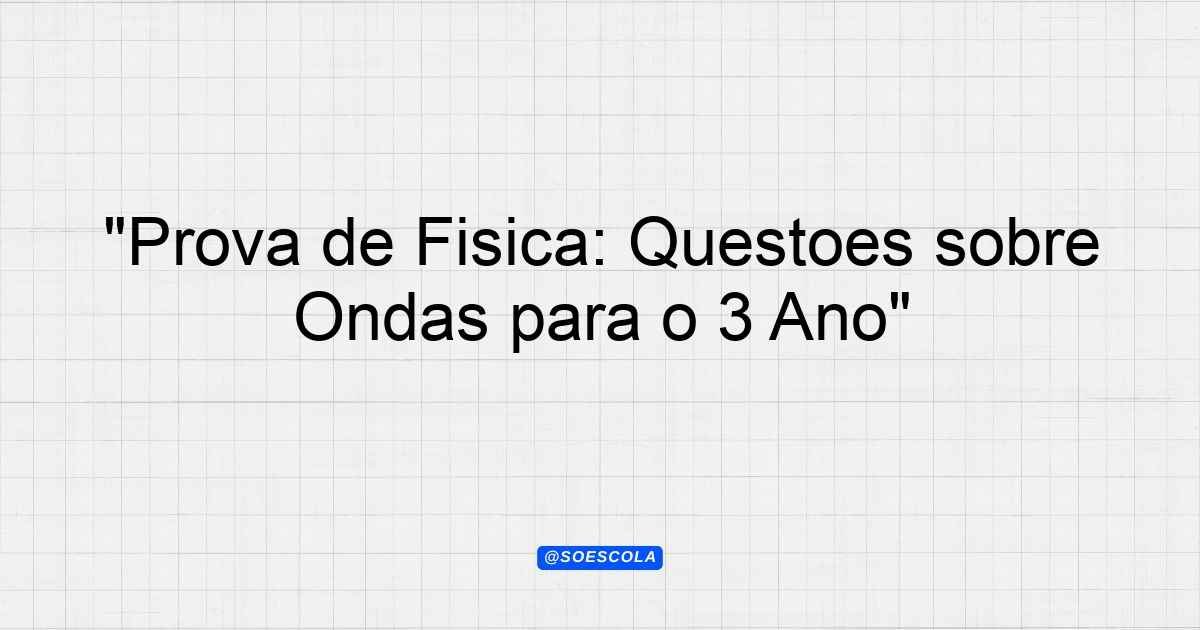 Continue lendoTema: OndasEtapa/Série: 3º ano – Ensino MédioDisciplina: FísicaQuestões: 10 Prova de Física: Tema ‘Ondas’ Nome do Aluno: _________________________ Data: ___/___/_____