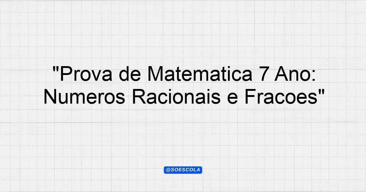 Continue lendoTema: NUMEROS RACIONAIS, DIZIMA PERIODICA, FRAÇÃOEtapa/Série: 7º anoDisciplina: MatemáticaQuestões: 5 Prova de Matemática – 7º Ano Tema: Números Racionais, Dízima