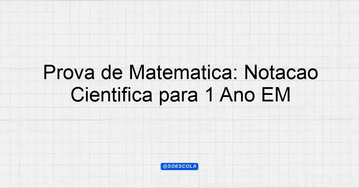 Continue lendoTema: notação cientificaEtapa/Série: 1º ano – Ensino MédioDisciplina: MatemáticaQuestões: 10 Prova de Matemática – Notação Científica 1º Ano – Ensino