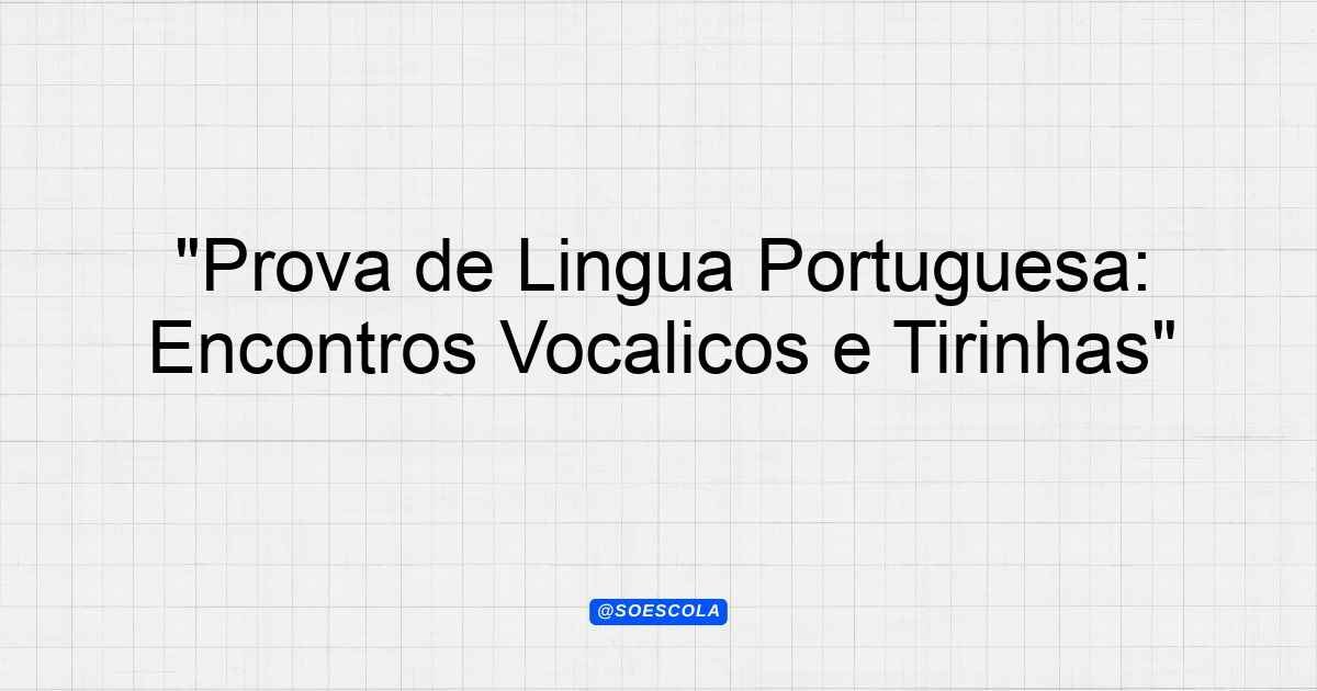 Continue lendoTema: encontro vocalicosEtapa/Série: 4º anoDisciplina: Língua PortuguesaQuestões: 10 Prova de Língua Portuguesa – Encontros Vocálicos Esta prova é destinada aos