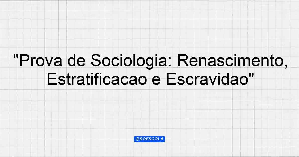 Continue lendoTema: renascimento, sociedade estratificada e a escravidãoEtapa/Série: 2º ano – Ensino MédioDisciplina: SociologiaQuestões: 1 “`html Prova de Sociologia: Renascimento, Sociedade