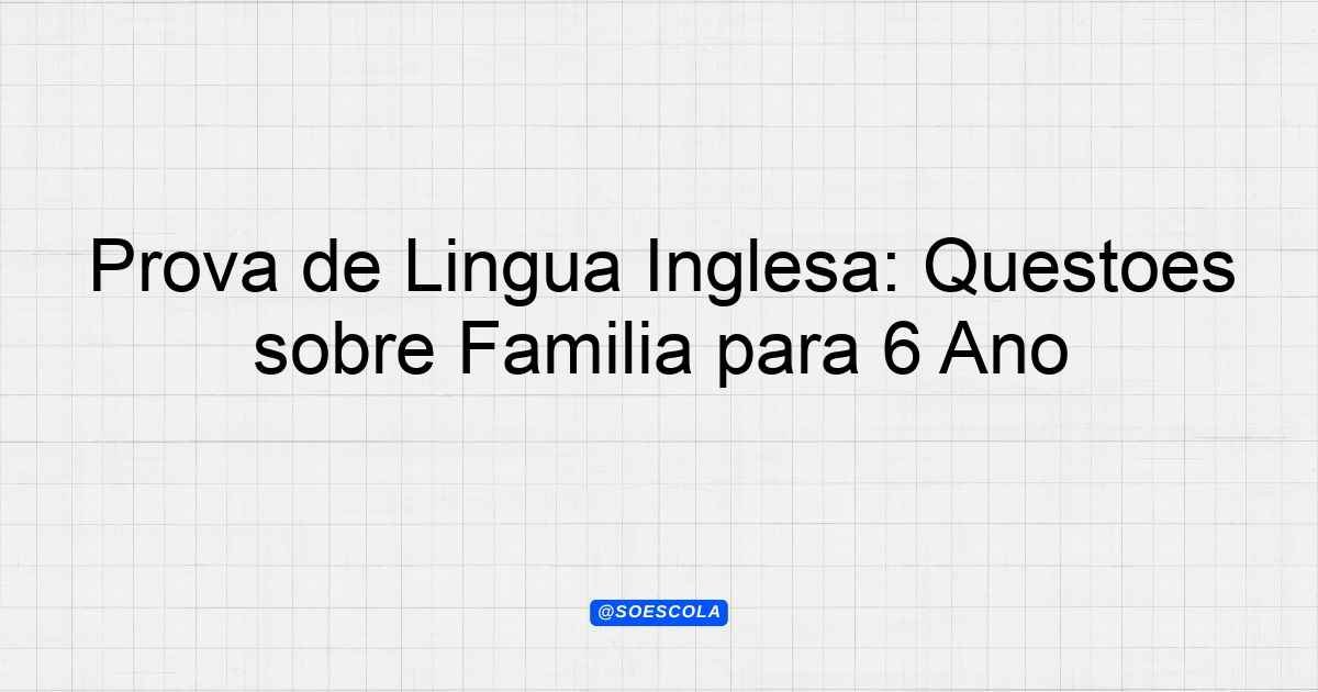 Continue lendoTema: familyEtapa/Série: 6º anoDisciplina: Língua InglesaQuestões: 5 “`html Prova de Língua Inglesa – 6º Ano Tema: Family Esta prova contém