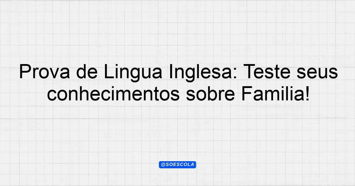 Continue lendoTema: familyEtapa/Série: 6º anoDisciplina: Língua InglesaQuestões: 10 Prova de Língua Inglesa – Tema: Family Esta prova tem como objetivo avaliar