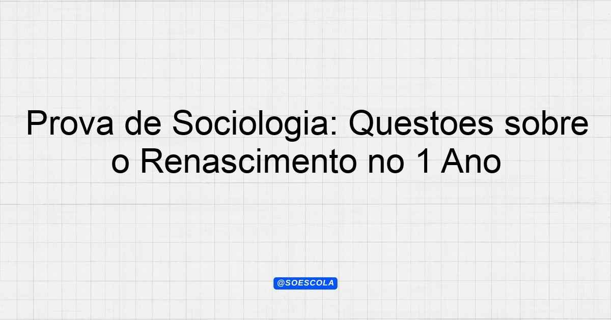 Continue lendoTema: renascimentoEtapa/Série: 1º ano – Ensino MédioDisciplina: SociologiaQuestões: 10 Prova de Sociologia – Tema: Renascimento Nome do Aluno: ________________________ Data: