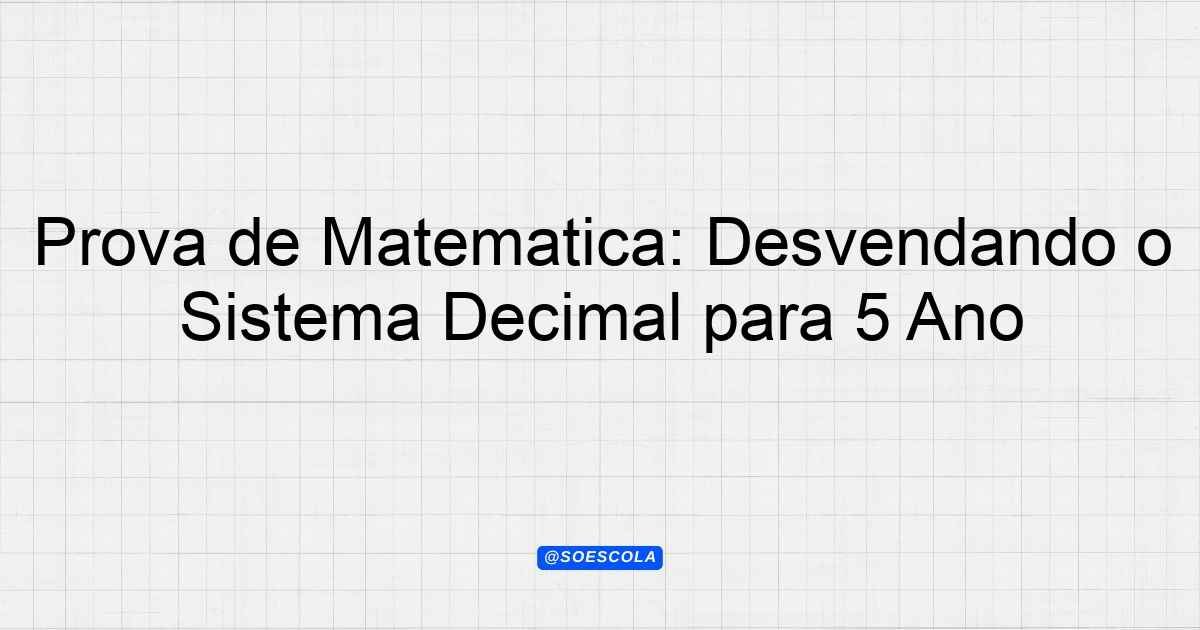 Continue lendoTema: sistema de numeração decimalEtapa/Série: 5º anoDisciplina: MatemáticaQuestões: 10 Prova de Matemática: Sistema de Numeração Decimal Nome do Aluno: _________________________