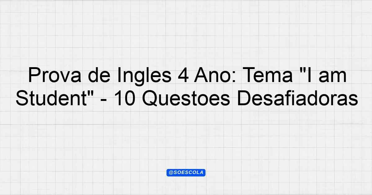 Continue lendoTema: I am StudentEtapa/Série: 4º anoDisciplina: Língua InglesaQuestões: 10 Prova de Língua Inglesa: Tema “I am Student” Nome do Aluno: