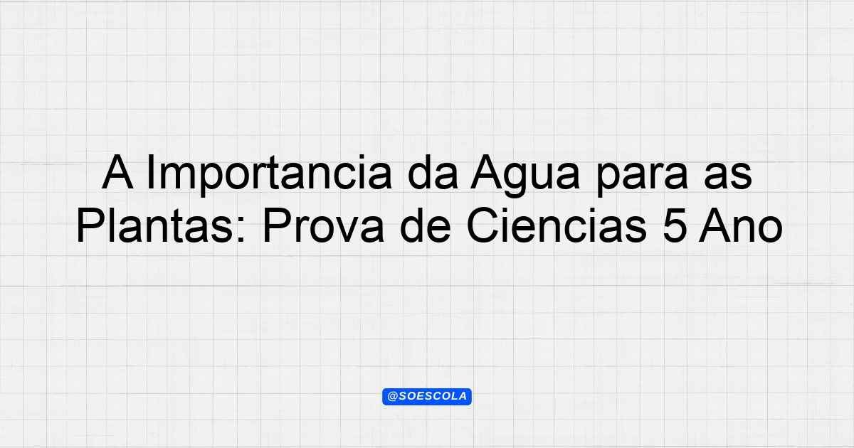 Continue lendoTema: A importancia da agua para as plantasEtapa/Série: 5º anoDisciplina: CiênciasQuestões: 10 Prova de Ciências – 5º Ano Tema: A