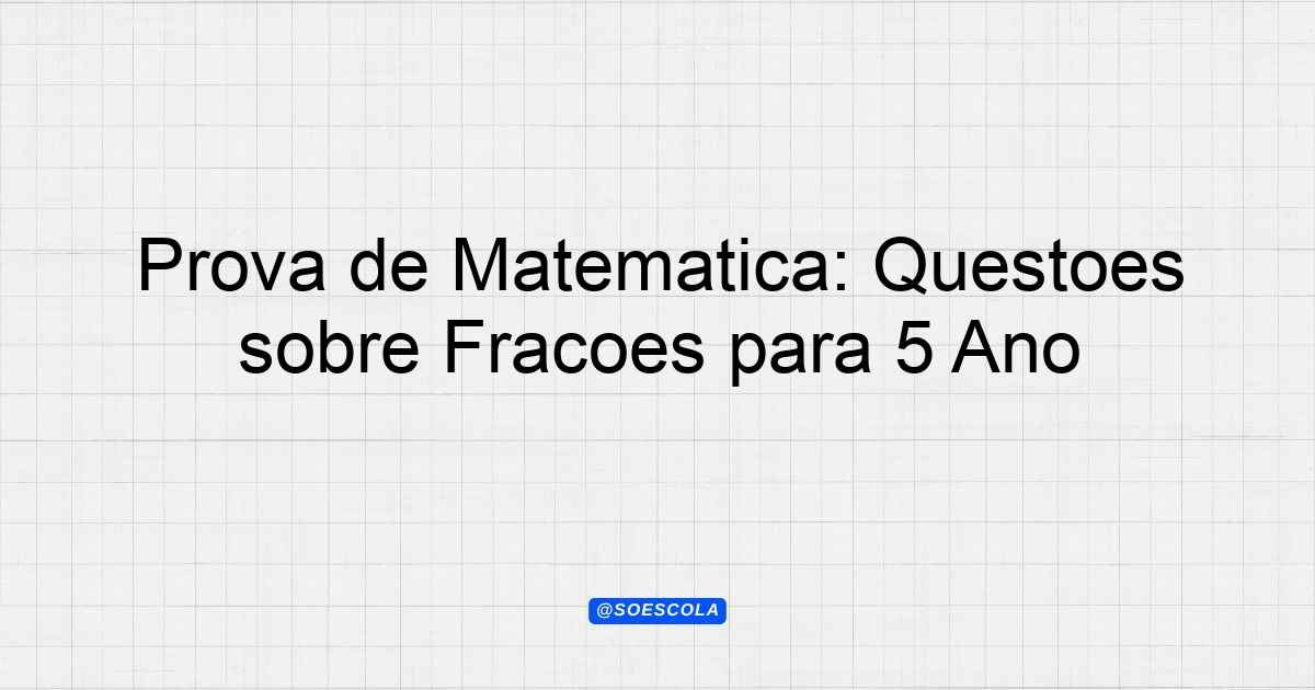 Continue lendoTema: FraçõesEtapa/Série: 5º anoDisciplina: MatemáticaQuestões: 10 Prova de Matemática – Tema: Frações Alunos do 5º ano Nome: ___________________________ Data: ____/____/____