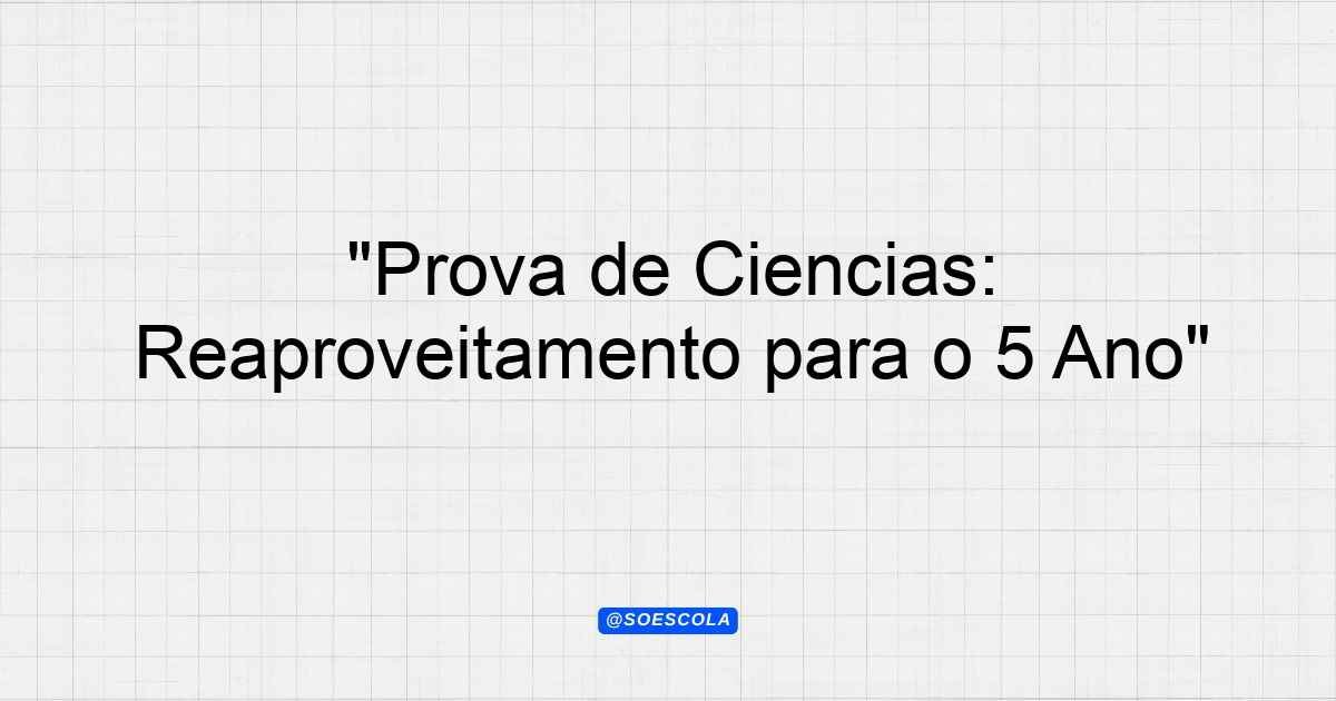Continue lendoTema: ReaproveitamentoEtapa/Série: 5º anoDisciplina: CiênciasQuestões: 10 Prova de Ciências – 5º Ano Tema: Reaproveitamento — Instruções: Responda todas as questões