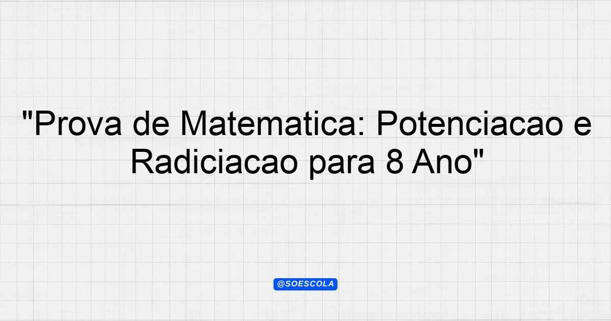 Continue lendoTema: POTENCIAÇÃO E RADICIAÇÃOEtapa/Série: 8º anoDisciplina: Matemática e suas TecnologiasQuestões: 20 Prova de Matemática e suas Tecnologias – 8º Ano