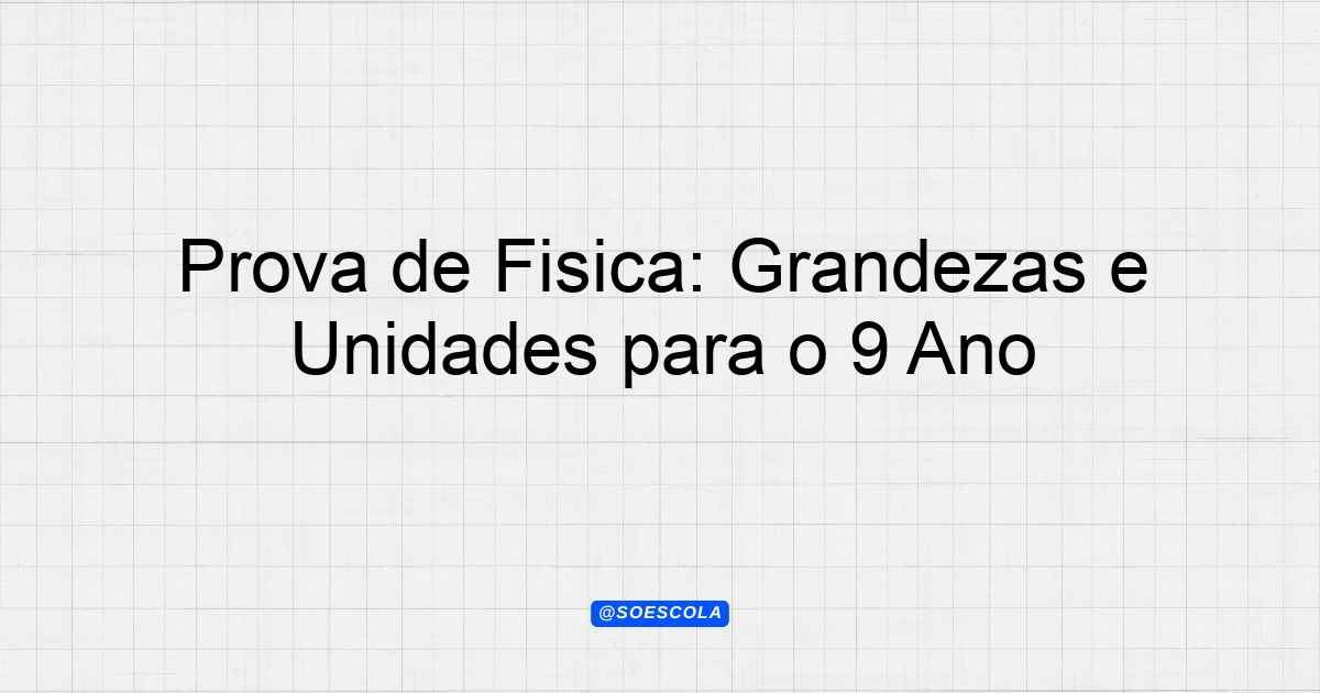 Prova de Física: Grandezas e Unidades para o 9º Ano