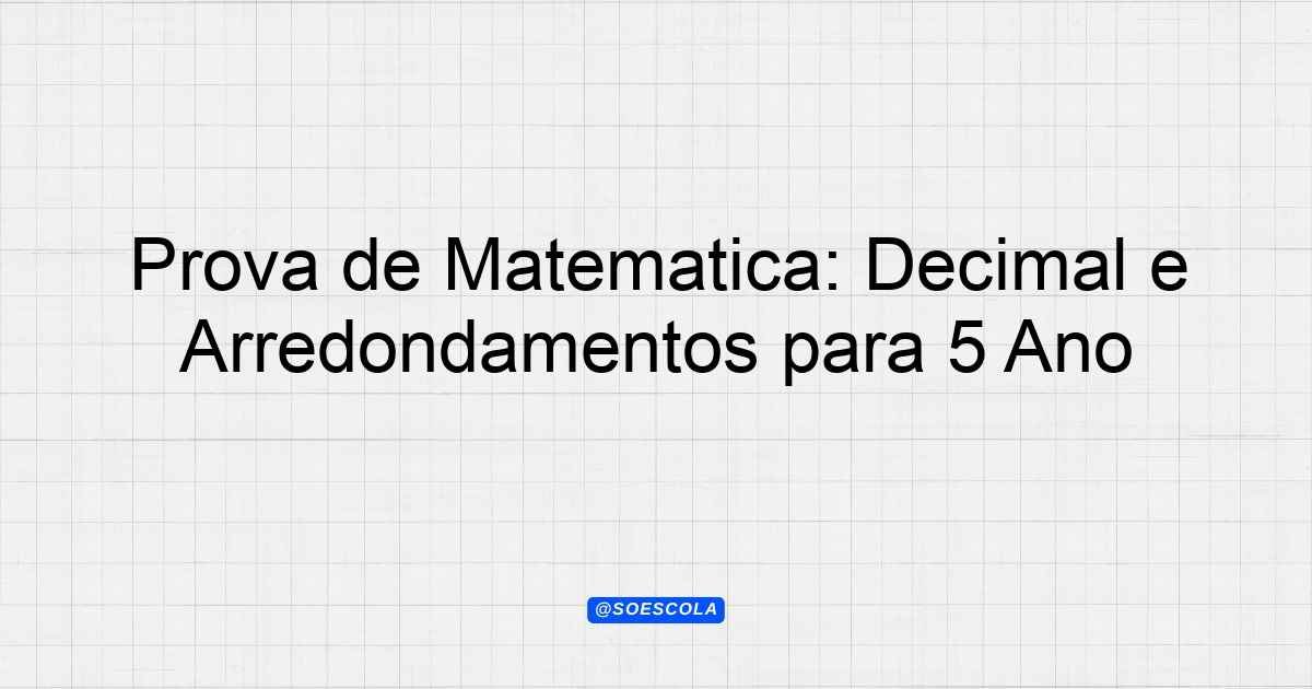 Continue lendoTema: Sistema de numeração decimal e arredondamentosEtapa/Série: 5º anoDisciplina: MatemáticaQuestões: 10 Prova de Matemática: Sistema de Numeração Decimal e Arredondamentos