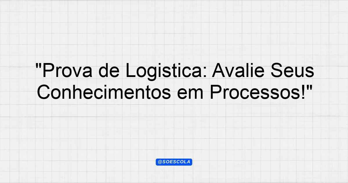 Continue lendoTema: processos logísticosEtapa/Série: 3º ano – Ensino MédioDisciplina: Formação Técnica e ProfissionalQuestões: 10 Prova de Formação Técnica e Profissional Tema: