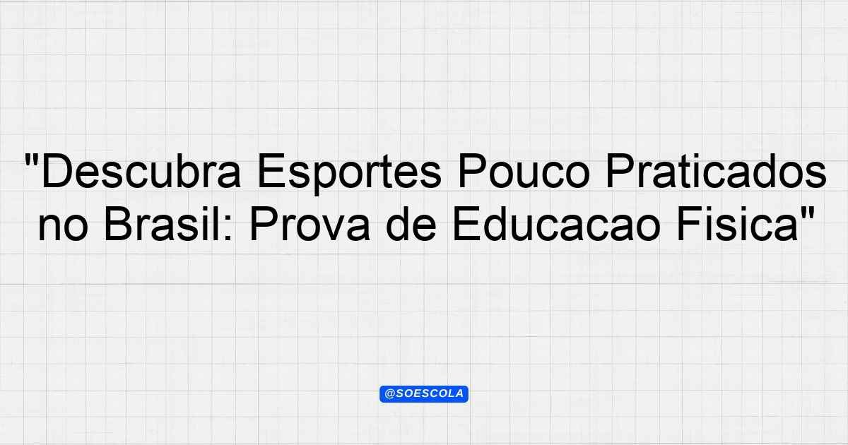 Continue lendoTema: ESPORTES POUCO PRATICADOS NO BRASILEtapa/Série: 1º ano – Ensino MédioDisciplina: Educação FísicaQuestões: 12 Prova de Educação Física – 1º