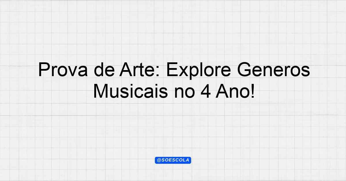 Continue lendoTema: Gêneros musicaisEtapa/Série: 4º anoDisciplina: ArteQuestões: 10 Prova de Arte – 4º Ano Tema: Gêneros Musicais — Instruções: Leia atentamente