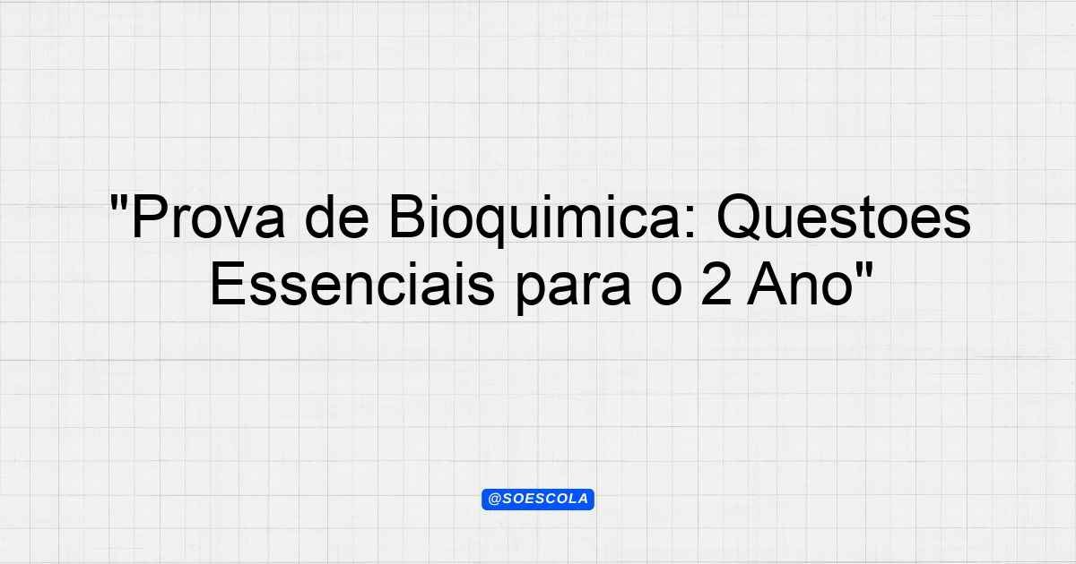 Continue lendoTema: BioquímicaEtapa/Série: 2º ano – Ensino MédioDisciplina: BiologiaQuestões: 10 Prova de Bioquímica – 2º Ano do Ensino Médio Instruções: Questões: