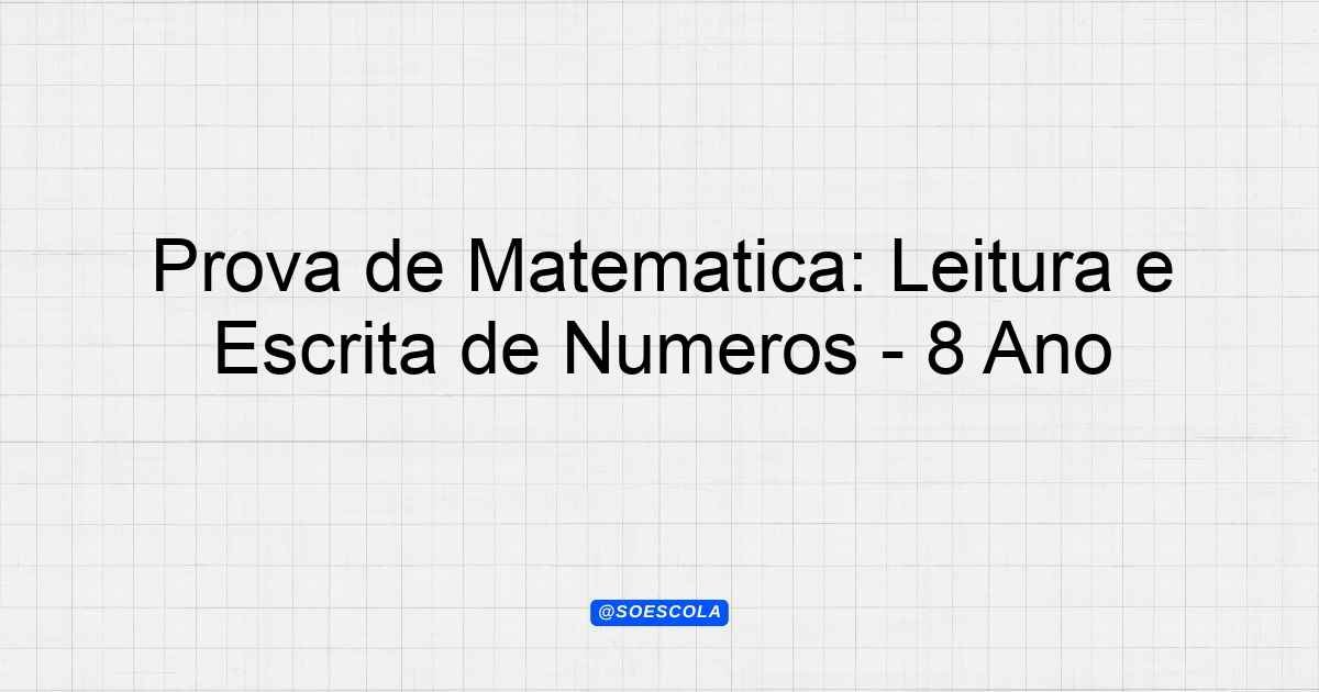 Continue lendoTema: leitura e escrita de numeroEtapa/Série: 8º anoDisciplina: MatemáticaQuestões: 1 Prova de Matemática – 8º Ano Tema: Leitura e Escrita