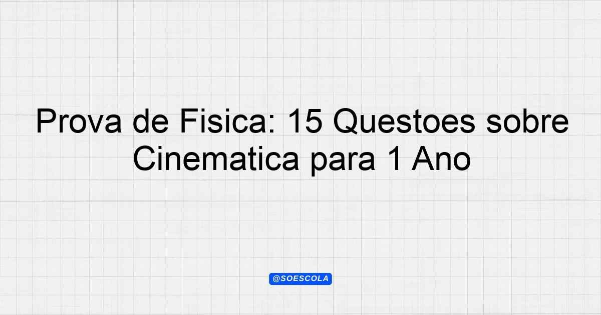 Continue lendoTema: cinemáticaEtapa/Série: 1º ano – Ensino MédioDisciplina: FísicaQuestões: 15 Prova de Física – Cinemática Prova de Física – 1º ano