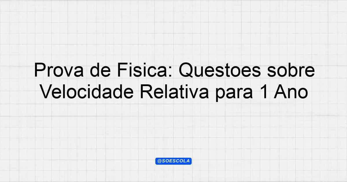 Continue lendoTema: velocidade relativaEtapa/Série: 1º ano – Ensino MédioDisciplina: FísicaQuestões: 7 Prova de Física – Velocidade Relativa Nome do aluno: _______________________