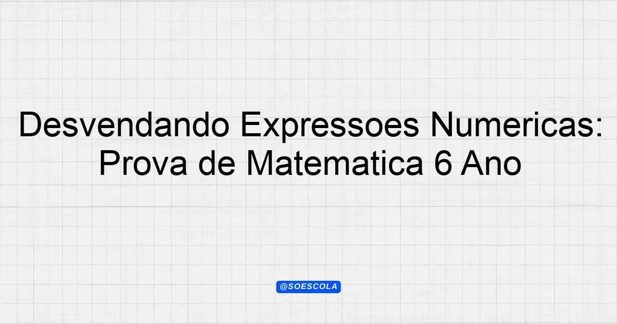 Continue lendoTema: expressões numéricasEtapa/Série: 6º anoDisciplina: MatemáticaQuestões: 5 Prova de Matemática – 6º Ano Tema: Expressões Numéricas A seguir, você encontrará