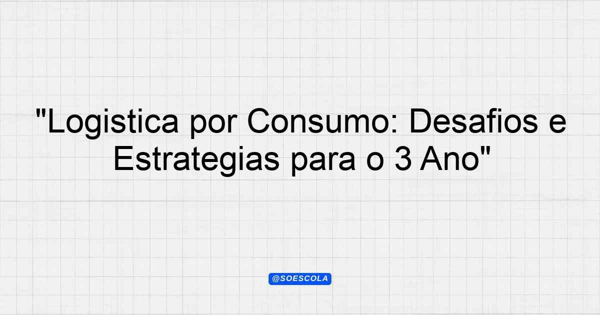 Continue lendoTema: logisitica por consumoEtapa/Série: 3º ano – Ensino MédioDisciplina: Formação Técnica e ProfissionalQuestões: 3 Prova: Logística por Consumo Disciplina: Formação