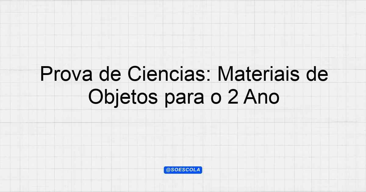 Continue lendoTema: materiais de objetosEtapa/Série: 2º anoDisciplina: CiênciasQuestões: 10 Prova de Ciências – 2º Ano Tema: Materiais de Objetos Instruções: Leia