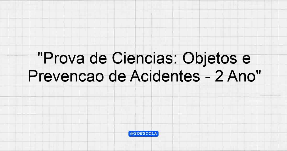 Continue lendoTema: objetos e acidentesEtapa/Série: 2º anoDisciplina: CiênciasQuestões: 10 Prova de Ciências – 2º Ano Tema: Objetos e Acidentes Instruções: Leia