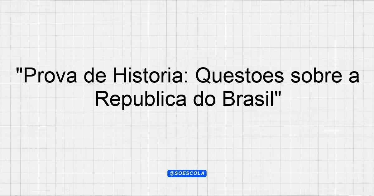 Continue lendoTema: republica brasilEtapa/Série: 9º anoDisciplina: HistóriaQuestões: 6 Prova de História – República do Brasil Aluno(a): ___________________________ Data: ____/____/______ Professor(a): ______________________