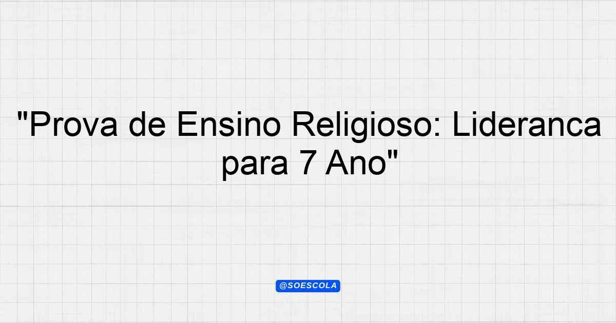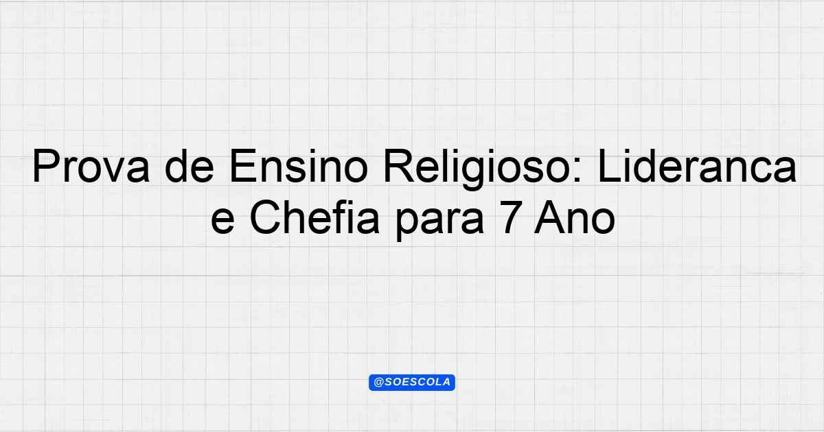 Continue lendoTema: Liderança e chefiaEtapa/Série: 7º anoDisciplina: Ensino ReligiosoQuestões: 6 Prova de Ensino Religioso: Liderança e Chefia Nome do aluno:______________________ Data:___/___/____