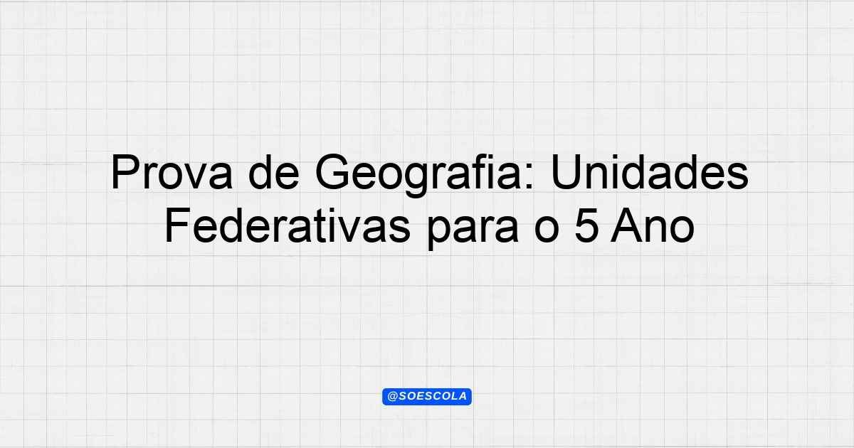 Continue lendoTema: unidades federativasEtapa/Série: 5º anoDisciplina: GeografiaQuestões: 5 Prova de Geografia – 5º Ano Tema: Unidades Federativas Instruções: Leia atentamente as