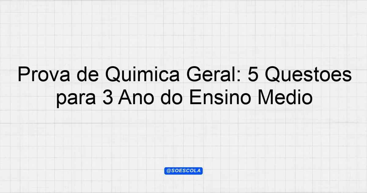 Continue lendoTema: química geralEtapa/Série: 3º ano – Ensino MédioDisciplina: QuímicaQuestões: 5 Prova de Química Geral – 3º Ano do Ensino Médio