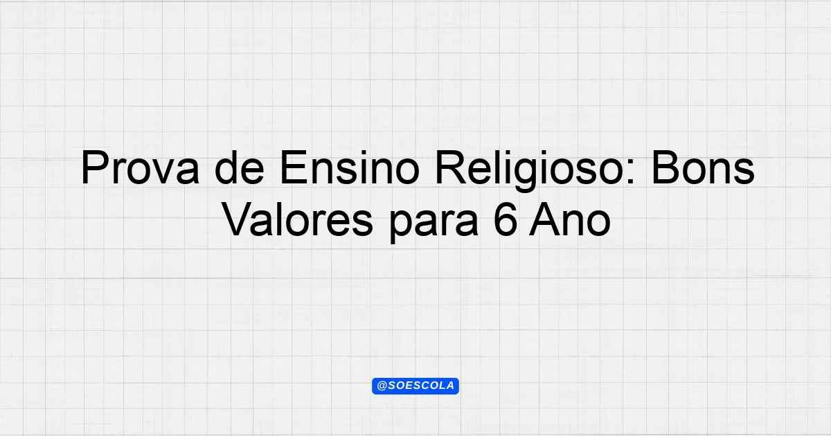 Continue lendoTema: Bons valoresEtapa/Série: 6º anoDisciplina: Ensino ReligiosoQuestões: 5 Prova de Ensino Religioso – 6º Ano Tema: Bons valores Leia atentamente