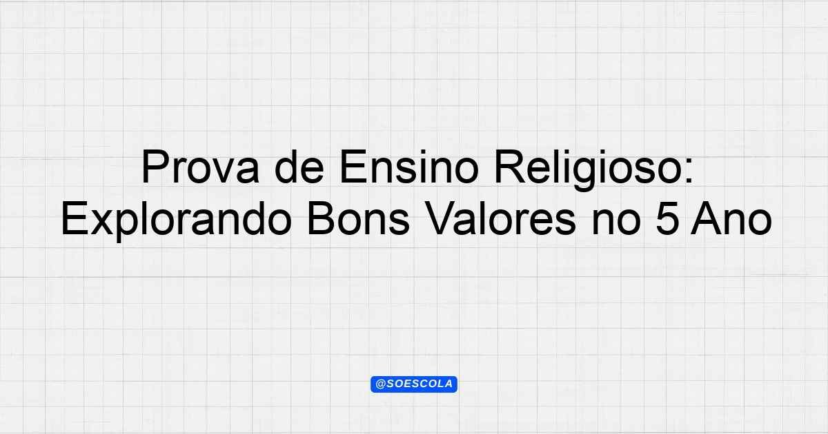 Continue lendoTema: bONS VALORESEtapa/Série: 5º anoDisciplina: Ensino ReligiosoQuestões: 5 Prova de Ensino Religioso – 5º Ano Tema: Bons Valores Esta prova