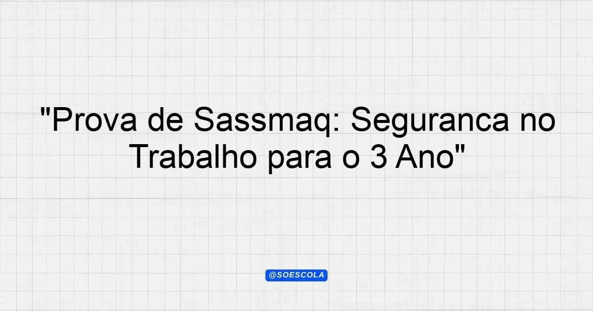 Continue lendoTema: SassmaqEtapa/Série: 3º ano – Ensino MédioDisciplina: Formação Técnica e ProfissionalQuestões: 3 Prova: Sassmaq – Formação Técnica e Profissional Nome