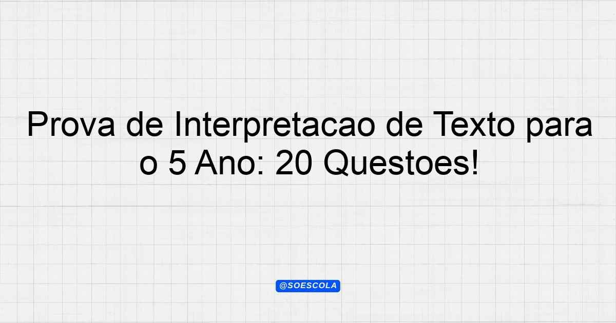 Continue lendoTema: interpretação de textoEtapa/Série: 5º anoDisciplina: Linguagens e suas TecnologiasQuestões: 20 Prova de Interpretação de Texto – 5º Ano Instruções: