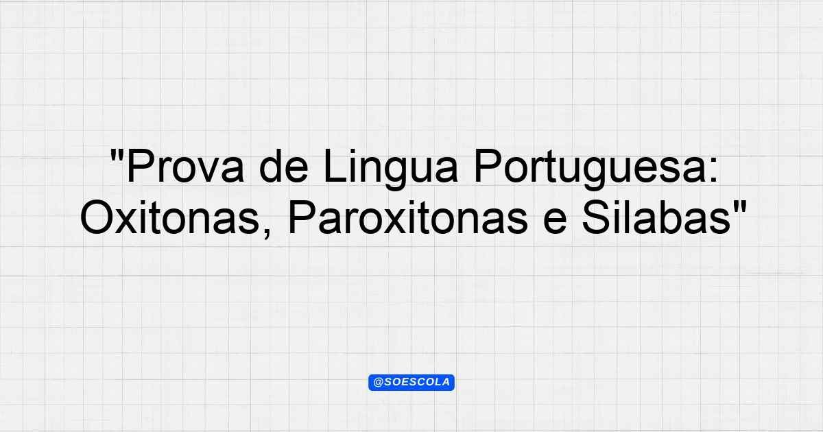 Continue lendoTema: Oxítona, Paroxítona, Proparoxítona, Separar Sílabas, Sílaba TônicaEtapa/Série: 4º anoDisciplina: Língua PortuguesaQuestões: 15 Prova de Língua Portuguesa – 4º Ano