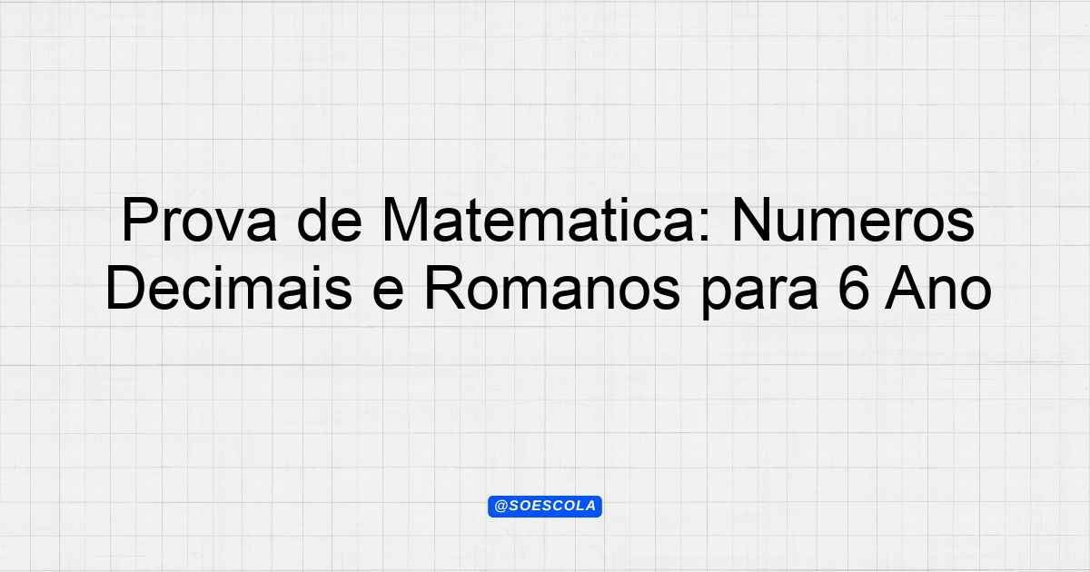 Continue lendoTema: sistema de numeros decimais ,romano,numeros naturais transformacao de anos em seculosEtapa/Série: 6º anoDisciplina: MatemáticaQuestões: 10 Prova de Matemática –