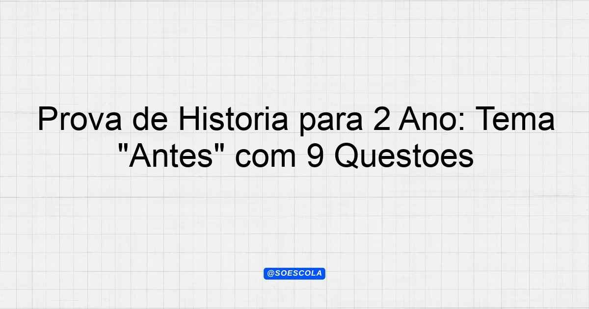 Continue lendoTema: antesEtapa/Série: 2º anoDisciplina: HistóriaQuestões: 9 “`html Prova de História – 2º Ano Tema: “Antes” Esta prova contém 9 questões